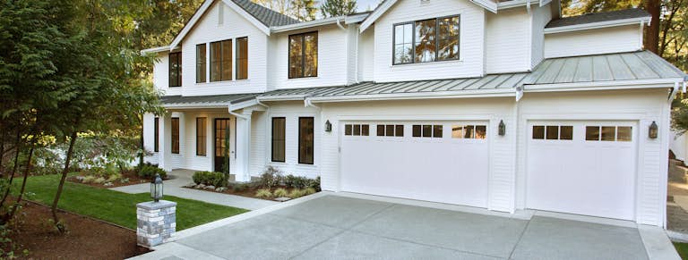 A luxurious carriage style door in a one-of-a-kind design will be the envy of your neighborhood. Easy to clean panels are 2” thick and all models have our standard white finish, which may be field painted to match any home façade. With 144 mix and match panel and window designs available and our precision cut Extira® composite wood overlays, it’s possible to create a custom carriage style garage door that perfectly complements your home.